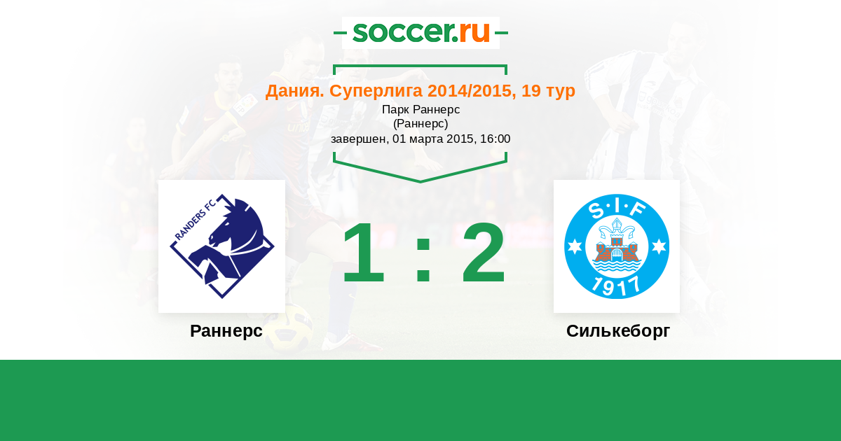 Дания. Суперлига 19.09.2014 Раннерс Логотип футбольный клуб Раннерс 1:0 Логотип футбольный клуб Силькеборг Силькеборг