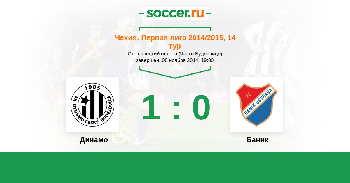 Чехия. Первая Лига 17.05.2015 Баник Логотип футбольный клуб Баник (Острава) 4:3 Логотип футбольный клуб Динамо (Ческе-Будеевице) Динамо