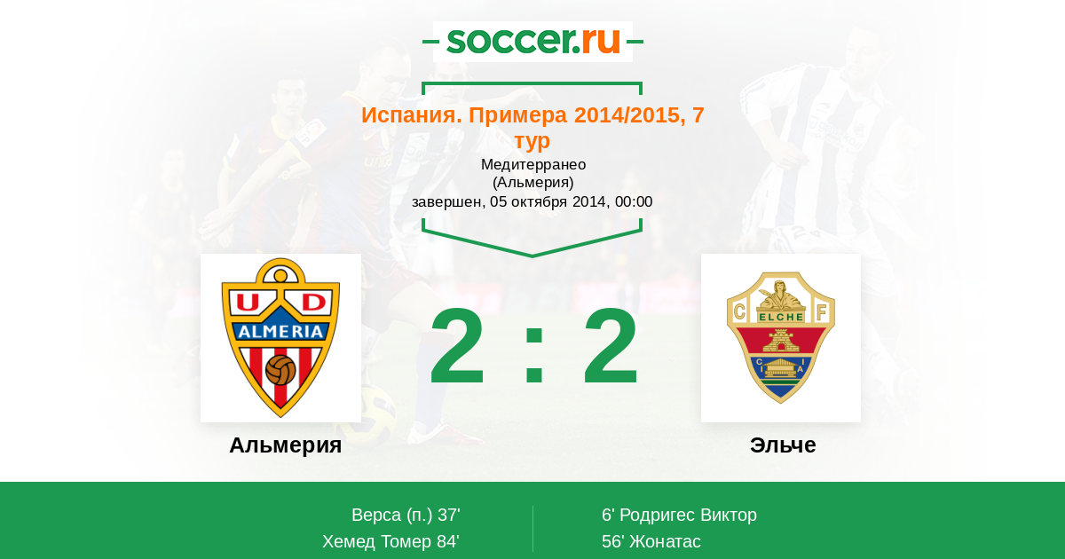 Испания. Сегунда 18.10.2015 Альмерия Логотип футбольный клуб Альмерия 2:3 Логотип футбольный клуб Эльче Эльче