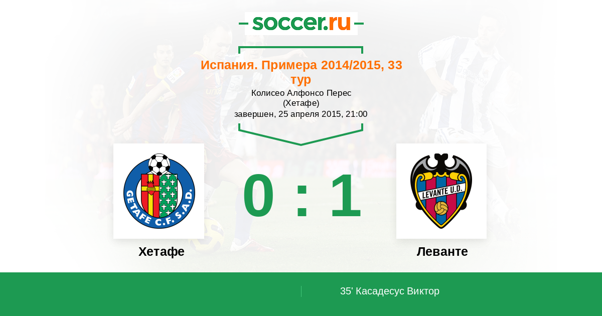 Испания. Примера 19.04.2014 Леванте Логотип футбольный клуб Леванте (Валенсия) 0:0 Логотип футбольный клуб Хетафе Хетафе