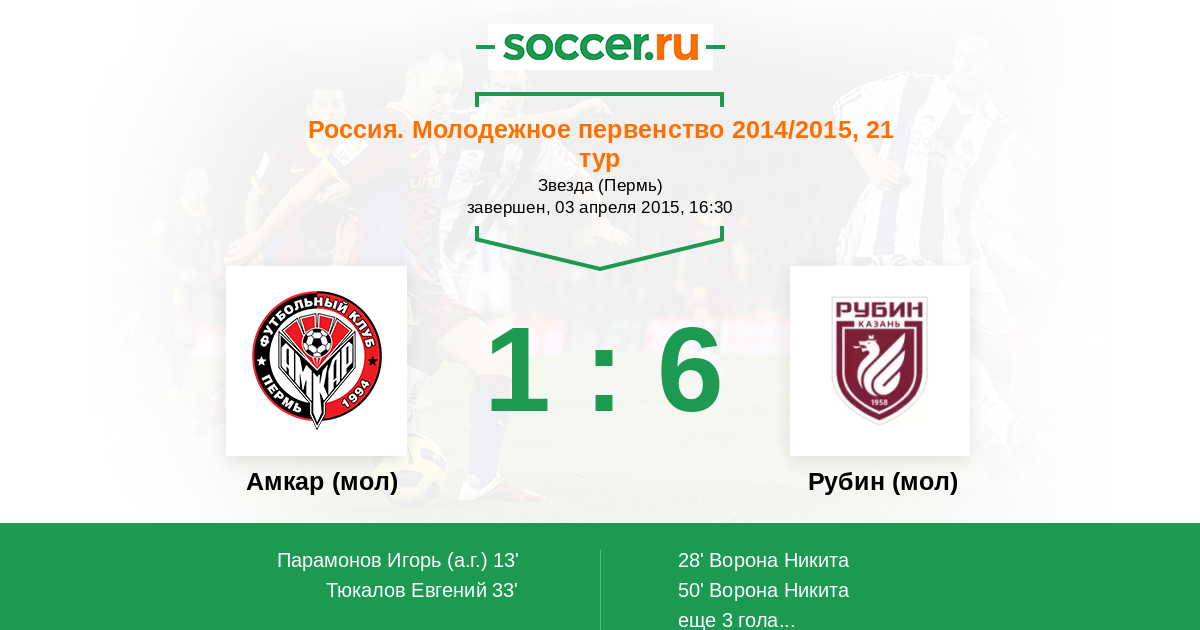 Россия. Премьер-Лига U21 18.04.2013 Амкар (мол) Логотип футбольный клуб Амкар (мол) (Пермь) 4:0 Логотип футбольный клуб Рубин (мол) (Казань) Рубин (мол)