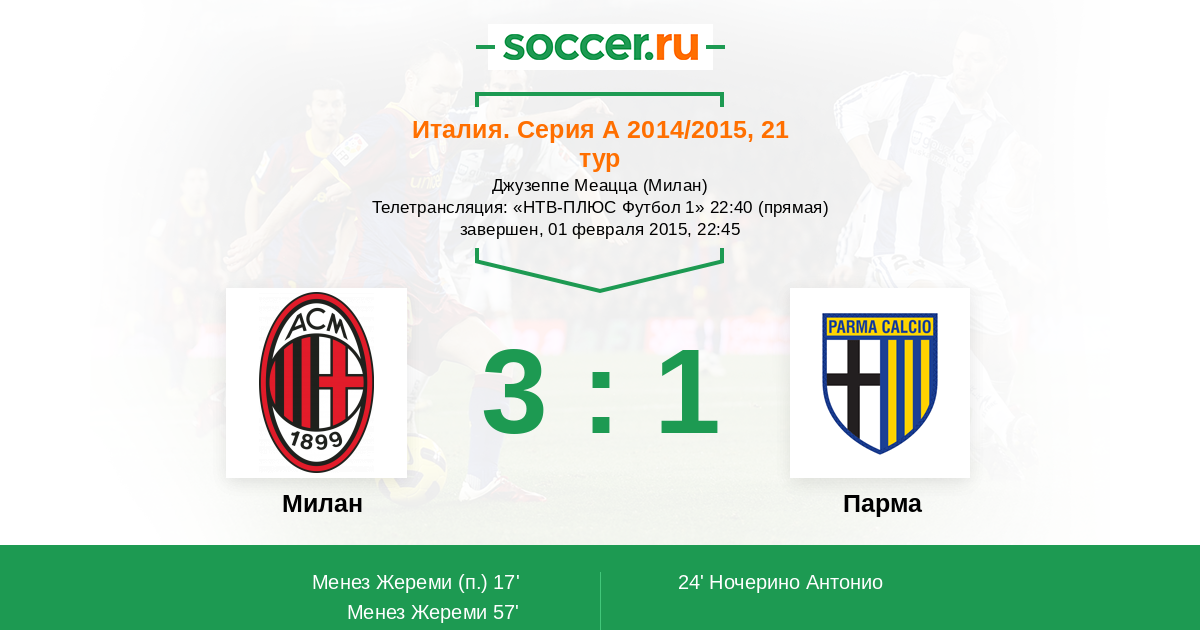 Италия. Серия А 14.09.2014 Парма Логотип футбольный клуб Парма 4:5 Логотип футбольный клуб Милан Милан