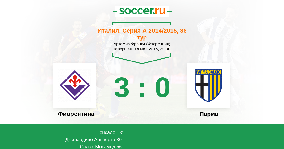 Италия. Серия А 30.09.2013 Фиорентина Логотип футбольный клуб Фиорентина (Флоренция) 2:2 Логотип футбольный клуб Парма Парма