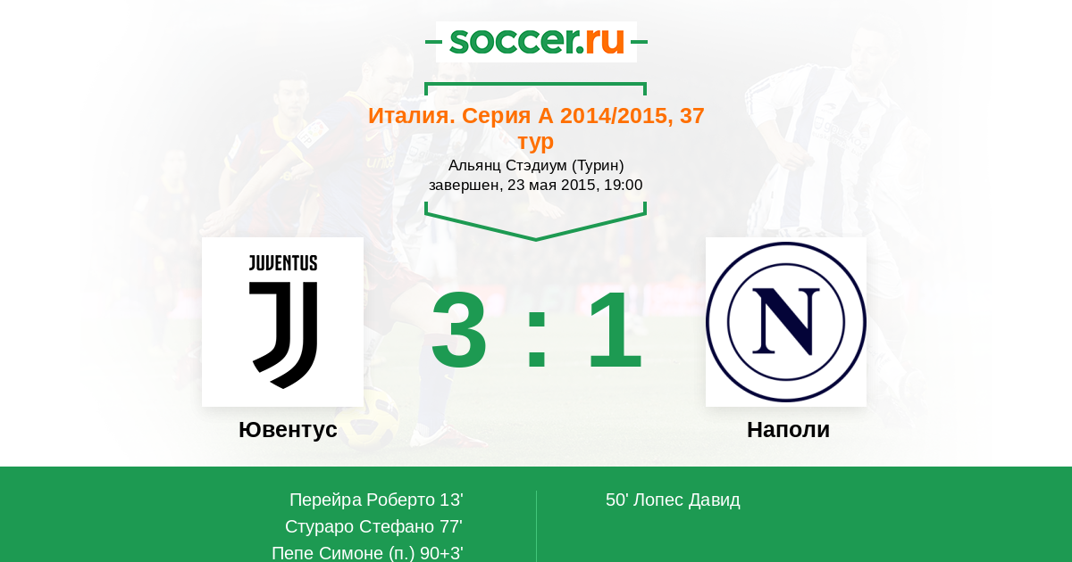 Италия. Серия А 11.01.2015 Наполи Логотип футбольный клуб Наполи (Неаполь) 1:3 Логотип футбольный клуб Ювентус (Турин) Ювентус