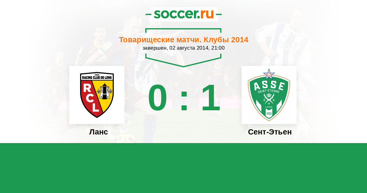 Товарищеские матчи. Клубы 21.07.2018 Ланс Логотип футбольный клуб Ланс 0:1 Логотип футбольный клуб Сент-Этьен Сент-Этьен