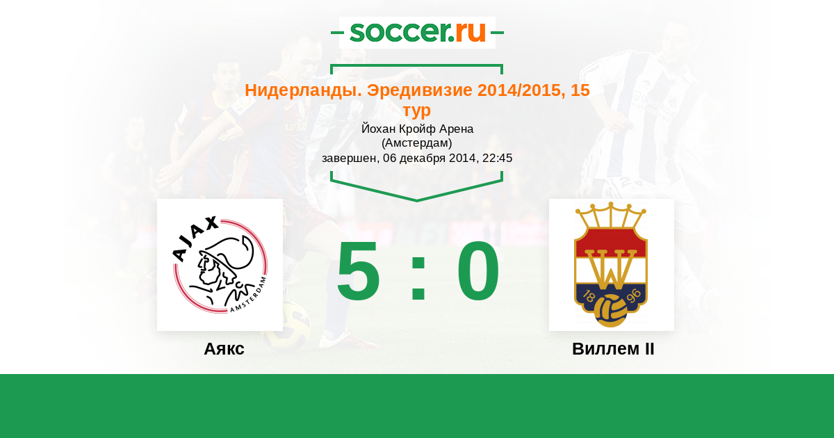 Нидерланды. Эредивизи 22.02.2015 Виллем II Логотип футбольный клуб Виллем II (Тилбург) 1:1 Логотип футбольный клуб Аякс (Амстердам) Аякс