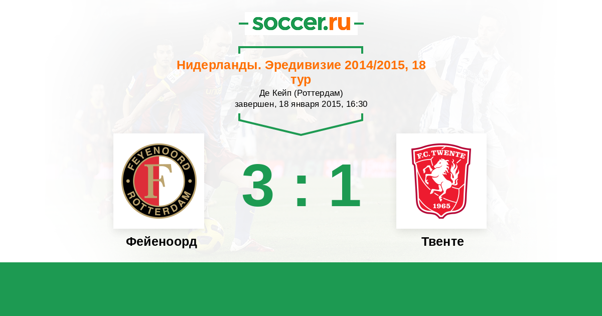Нидерланды. Эредивизи 23.02.2014 Твенте Логотип футбольный клуб Твенте (Энсхеде) 2:2 Логотип футбольный клуб Фейеноорд (Роттердам) Фейеноорд