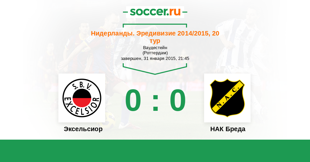 Нидерланды. Эредивизи 11.02.2018 Эксельсиор Логотип футбольный клуб Эксельсиор (Роттердам) 0:0 Логотип футбольный клуб НАК Бреда НАК Бреда