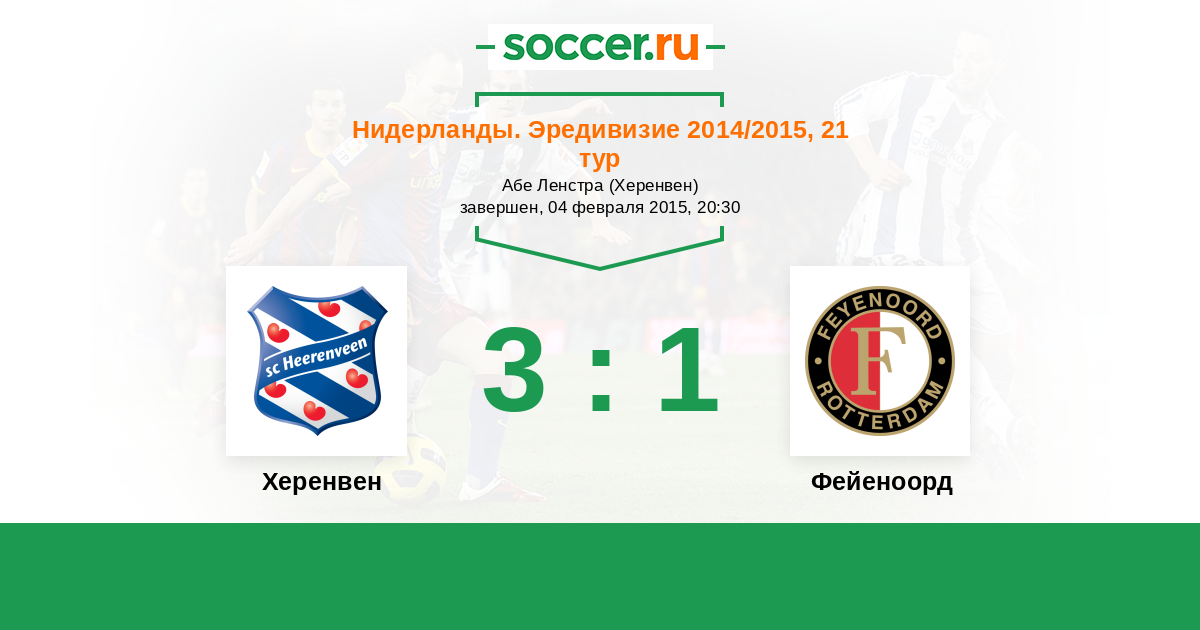 Нидерланды. Эредивизи 16.03.2014 Фейеноорд Логотип футбольный клуб Фейеноорд (Роттердам) 2:0 Логотип футбольный клуб Херенвен Херенвен