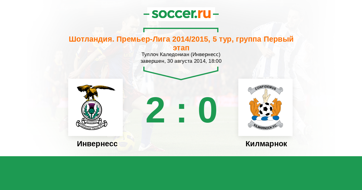 Шотландия. Премьер-Лига 14.09.2013 Килмарнок Логотип футбольный клуб Килмарнок 1:2 Логотип футбольный клуб Инвернесс Инвернесс