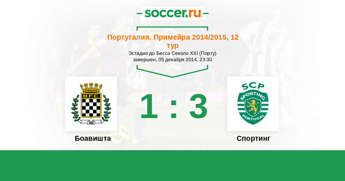Португалия. Примейра 19.04.2015 Спортинг Логотип футбольный клуб Спортинг (Лиссабон) 2:1 Логотип футбольный клуб Боавишта (Порту) Боавишта