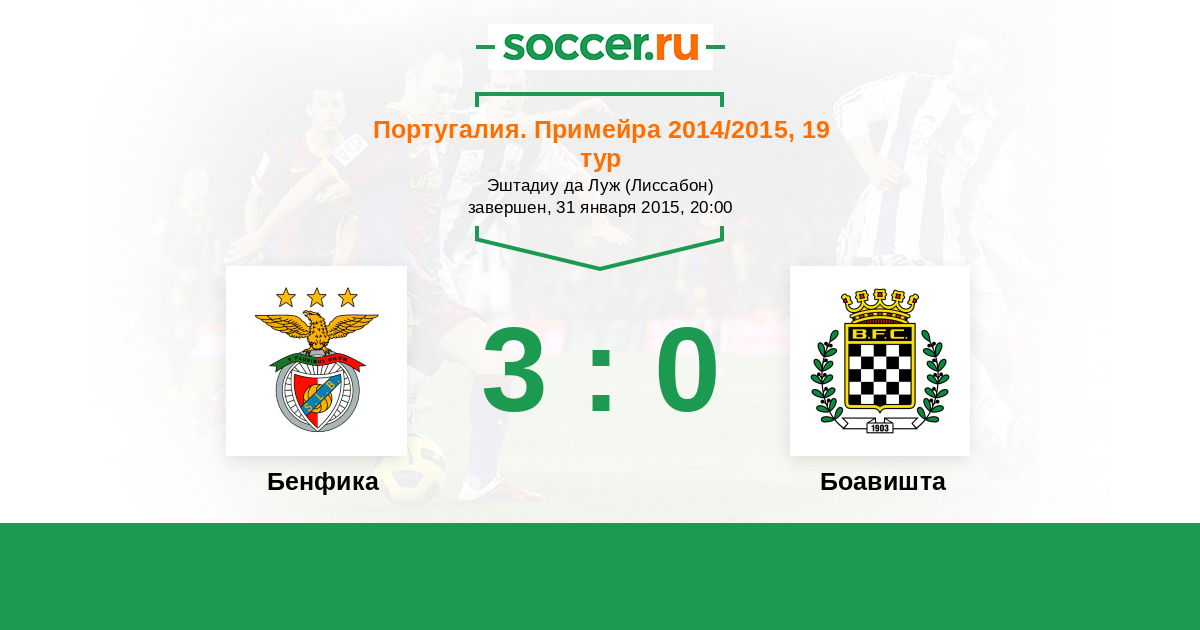 Португалия. Примейра 29.01.2019 Бенфика Логотип футбольный клуб Бенфика (Лиссабон) 5:1 Логотип футбольный клуб Боавишта (Порту) Боавишта