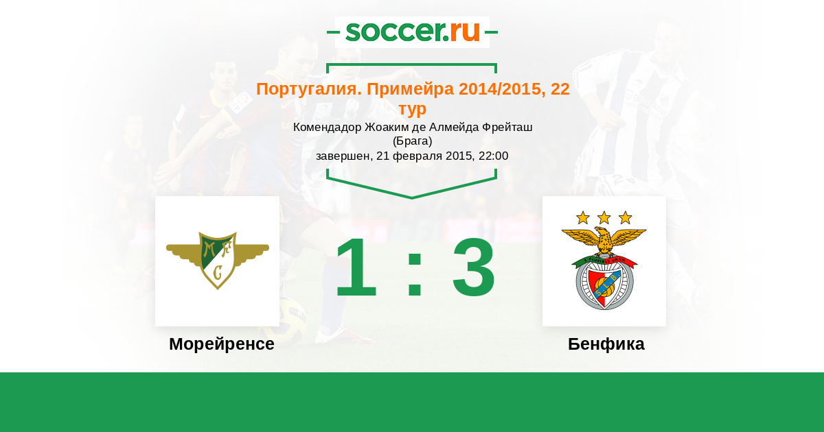 Португалия. Примейра 21.09.2014 Бенфика Логотип футбольный клуб Бенфика (Лиссабон) 3:1 Логотип футбольный клуб Морейренcе (Морейра-де-Конегуш) Морейренcе