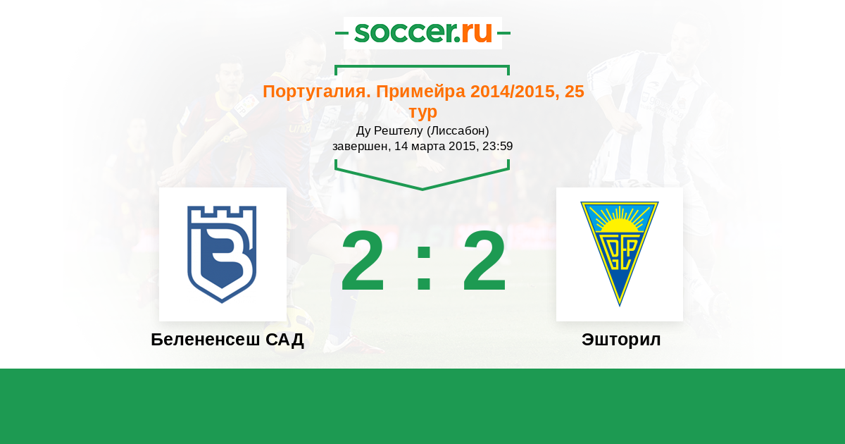 Португалия. Примейра 26.10.2014 Эшторил Логотип футбольный клуб Эшторил 1:2 Логотип футбольный клуб Белененсеш САД (Лиссабон) Белененсеш САД