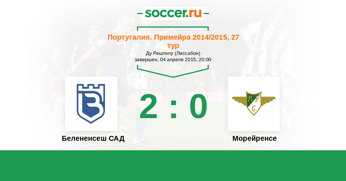 Португалия. Примейра 21.09.2015 Белененсеш САД Логотип футбольный клуб Белененсеш САД (Лиссабон) 2:0 Логотип футбольный клуб Морейренcе (Морейра-де-Конегуш) Морейренcе