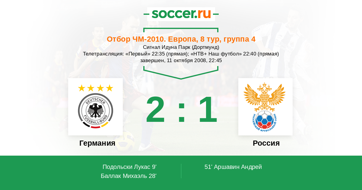Телетрансляция: «Первый» 22:35 (прямая); «НТВ+ Наш футбол» 22:40 (прямая)