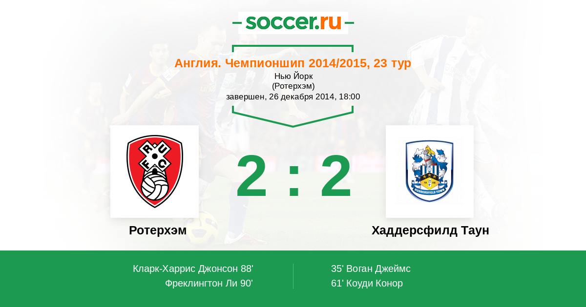 Англия. Чемпионшип 15.12.2015 Хаддерсфилд Таун Логотип футбольный клуб Хаддерсфилд Таун 2:0 Логотип футбольный клуб Ротерхэм (Шеффилд) Ротерхэм