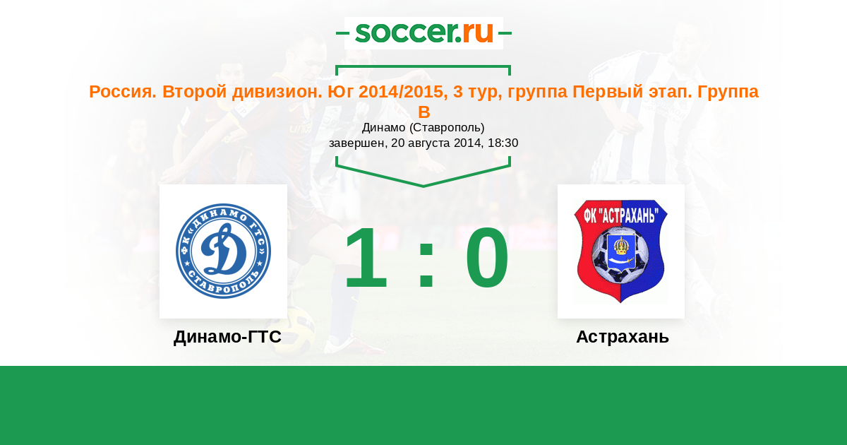 Россия. Вторая лига. Группа 1 19.10.2014 Астрахань Логотип футбольный клуб Астрахань 0:2 Логотип футбольный клуб Динамо-ГТС (Ставрополь) Динамо-ГТС