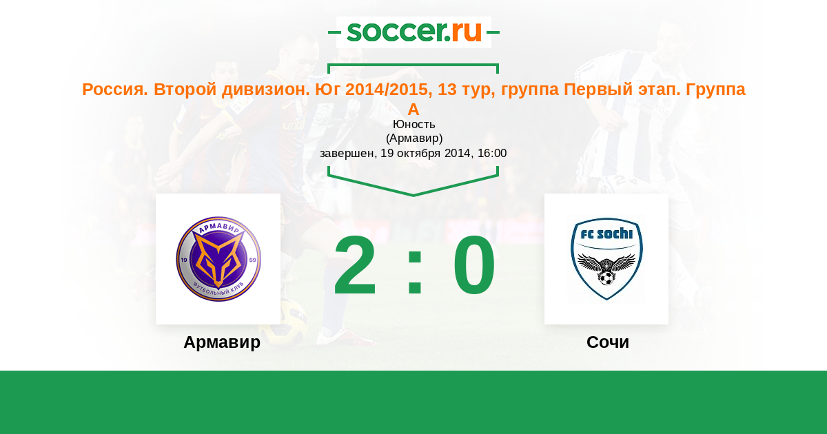 Россия. Вторая лига. Группа 1 20.08.2014 Сочи Логотип футбольный клуб Сочи 2:2 Логотип футбольный клуб Торпедо Армавир Торпедо Армавир