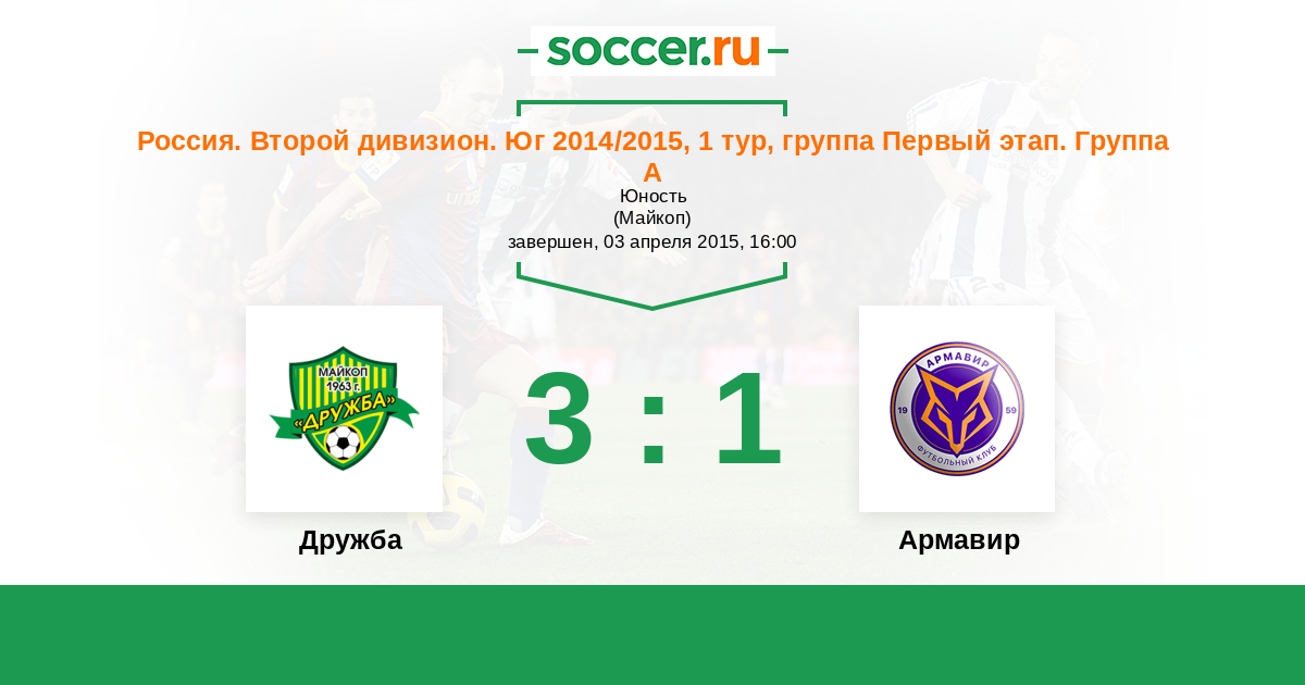 Россия. Вторая лига. Группа 1 28.07.2016 Дружба Логотип футбольный клуб Дружба (Майкоп) 2:3 Логотип футбольный клуб Армавир Армавир