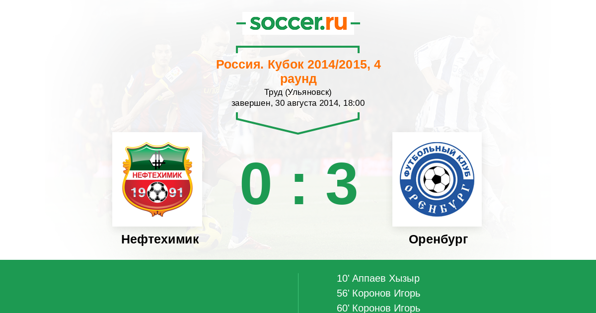 Россия. Первая лига 25.04.2014 Нефтехимик Логотип футбольный клуб Нефтехимик (Нижнекамск) 0:1 Логотип футбольный клуб Газовик (Оренбург) Газовик