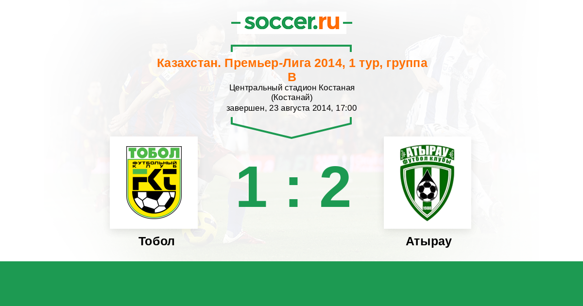 Казахстан. Премьер-лига 15.07.2012 Тобол Логотип футбольный клуб Тобол (Костанай) 1:0 Логотип футбольный клуб Атырау Атырау