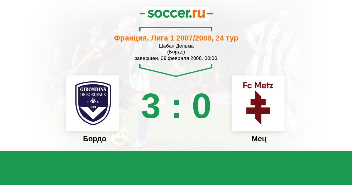Франция. Лига 1 29.08.2007 Мец Логотип футбольный клуб Мец 0:1 Логотип футбольный клуб Бордо Бордо