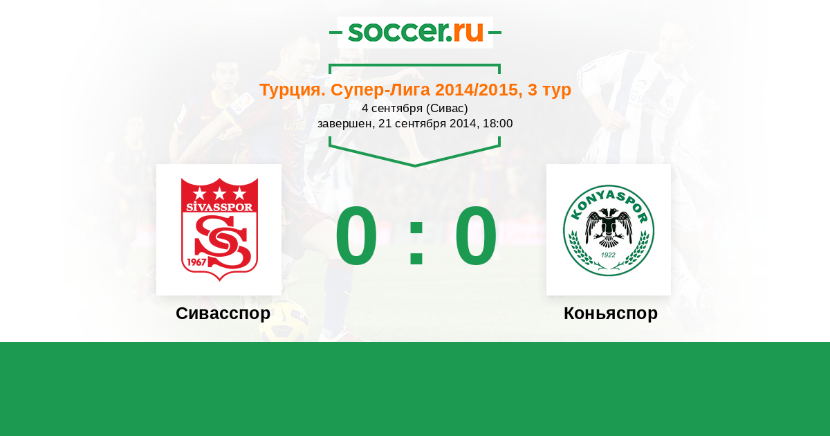 Турция. Суперлига 19.09.2015 Сивасспор Логотип футбольный клуб Сивасспор 0:0 Логотип футбольный клуб Коньяспор Коньяспор