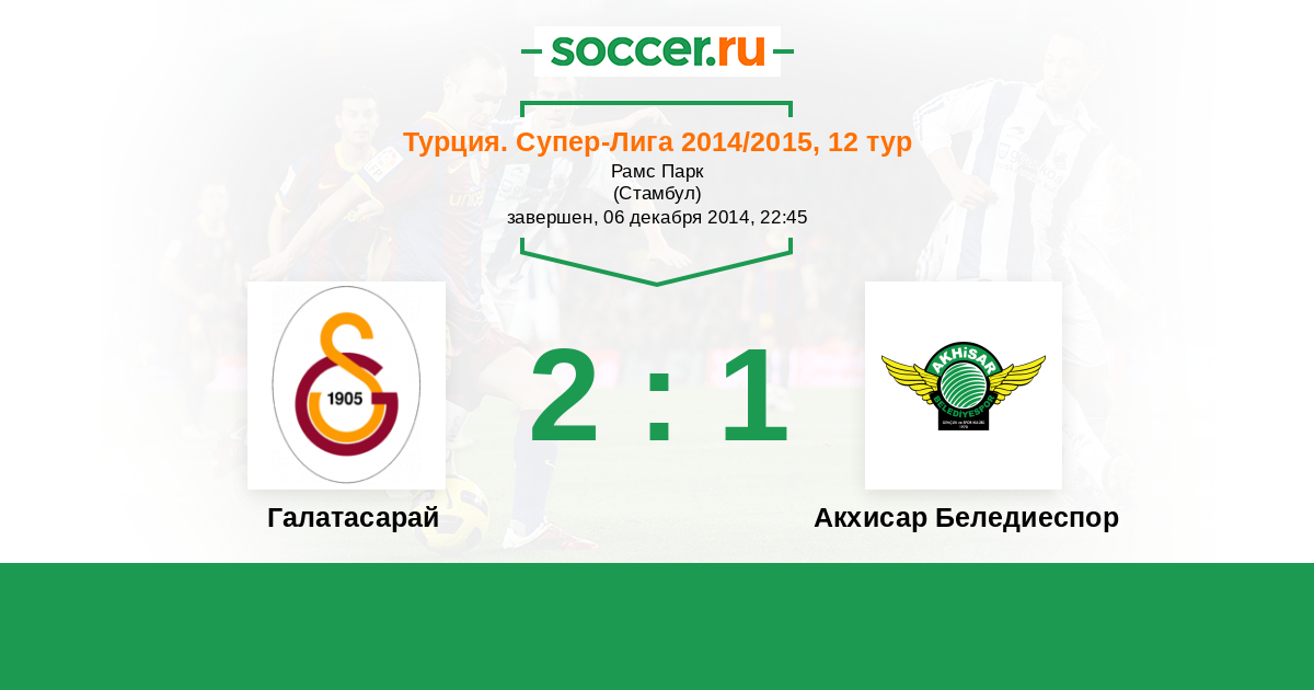 Турция. Суперлига 20.12.2015 Галатасарай Логотип футбольный клуб Галатасарай (Стамбул) 3:2 Логотип футбольный клуб Акхисар Беледиеспор Акхисар Беледиеспор
