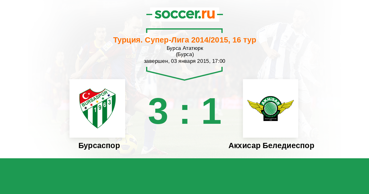 Турция. Суперлига 28.02.2014 Акхисар Беледиеспор Логотип футбольный клуб Акхисар Беледиеспор 2:1 Логотип футбольный клуб Бурсаспор Бурсаспор