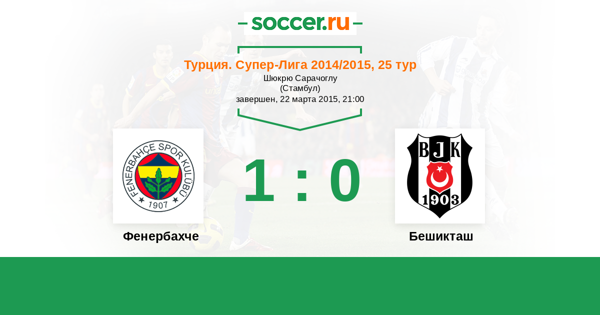 Турция. Суперлига 02.11.2014 Бешикташ Логотип футбольный клуб Бешикташ (Стамбул) 0:2 Логотип футбольный клуб Фенербахче (Стамбул) Фенербахче