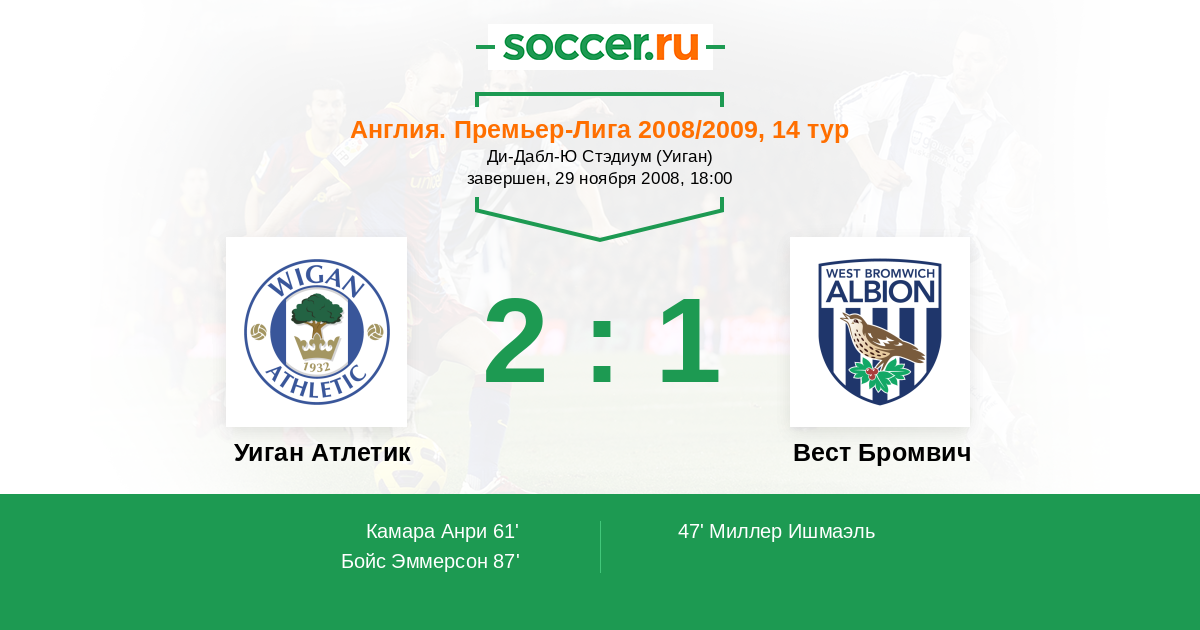 Англия. Премьер-Лига 10.11.2012 Уиган Атлетик Логотип футбольный клуб Уиган Атлетик 1:2 Логотип футбольный клуб Вест Бромвич Вест Бромвич