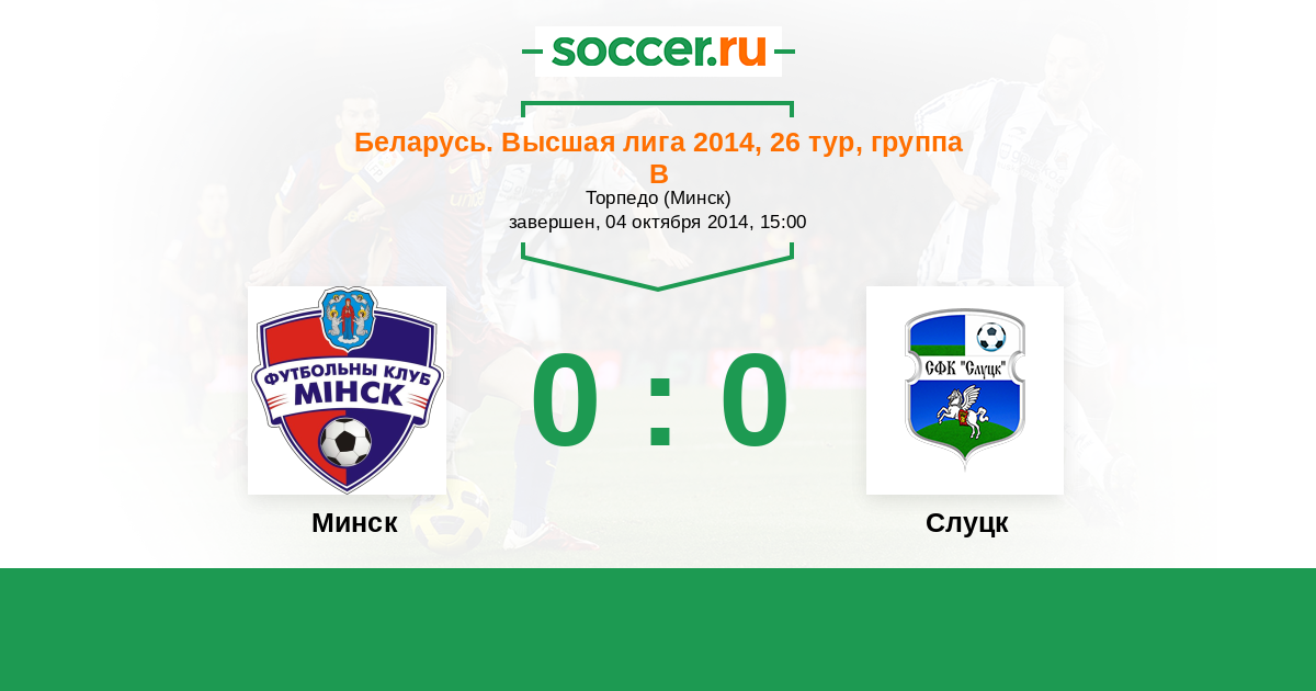 Беларусь. Высшая лига 11.04.2014 Минск Логотип футбольный клуб Минск 1:0 Логотип футбольный клуб Слуцк Слуцк