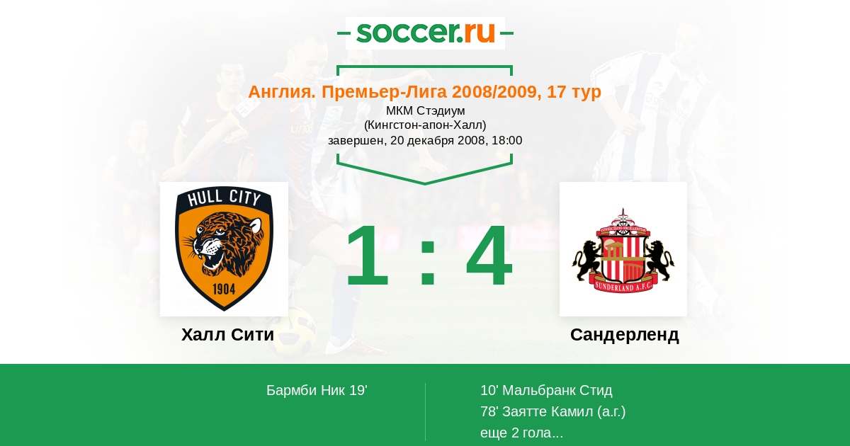 Англия. Премьер-Лига 18.04.2009 Сандерленд Логотип футбольный клуб Сандерленд 1:0 Логотип футбольный клуб Халл Сити (Кингстон-апон-Халл) Халл Сити