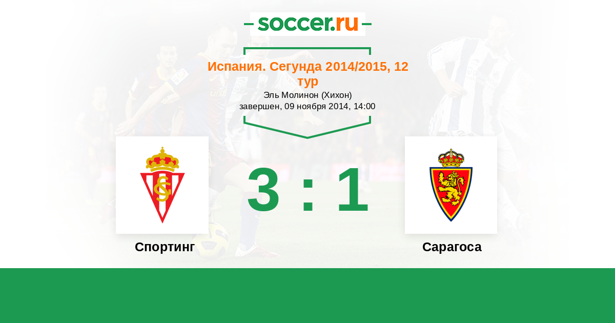 Испания. Сегунда 05.01.2014 Спортинг Логотип футбольный клуб Спортинг (Хихон) 2:3 Логотип футбольный клуб Сарагоса Сарагоса
