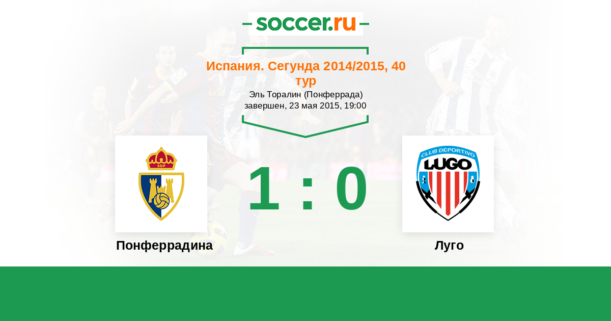 Испания. Сегунда 15.05.2016 Понферрадина Логотип футбольный клуб Понферрадина 2:1 Логотип футбольный клуб Луго Луго