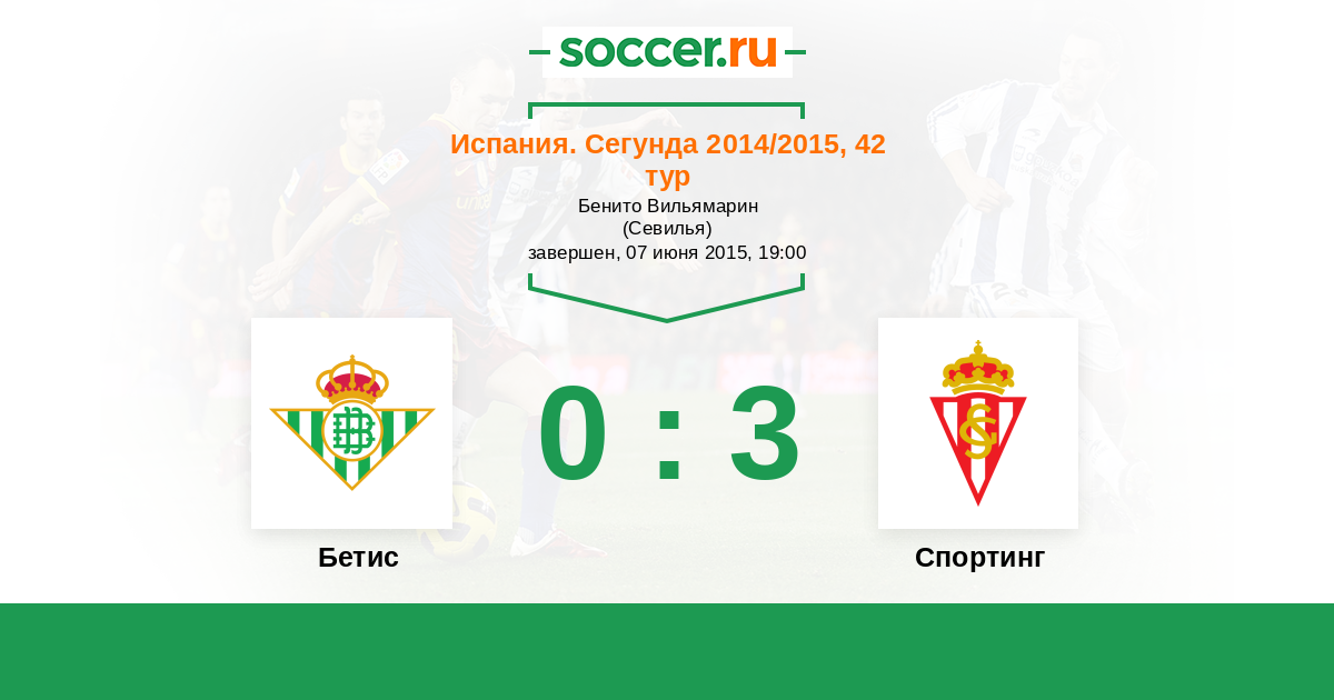 Испания. Кубок 02.12.2015 Бетис Логотип футбольный клуб Бетис (Севилья) 2:0 Логотип футбольный клуб Спортинг (Хихон) Спортинг