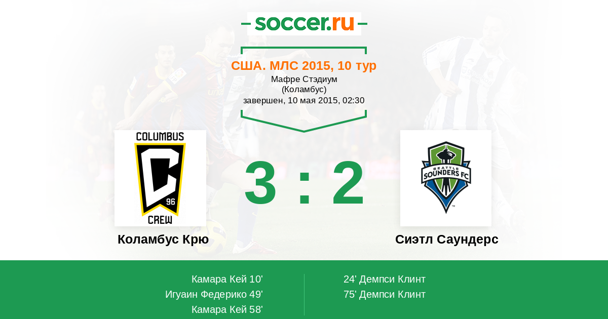 США. МЛС 02.05.2010 Сиэтл Саундерс Логотип футбольный клуб Сиэтл Саундерс 1:1 Логотип футбольный клуб Коламбус Крю Коламбус Крю