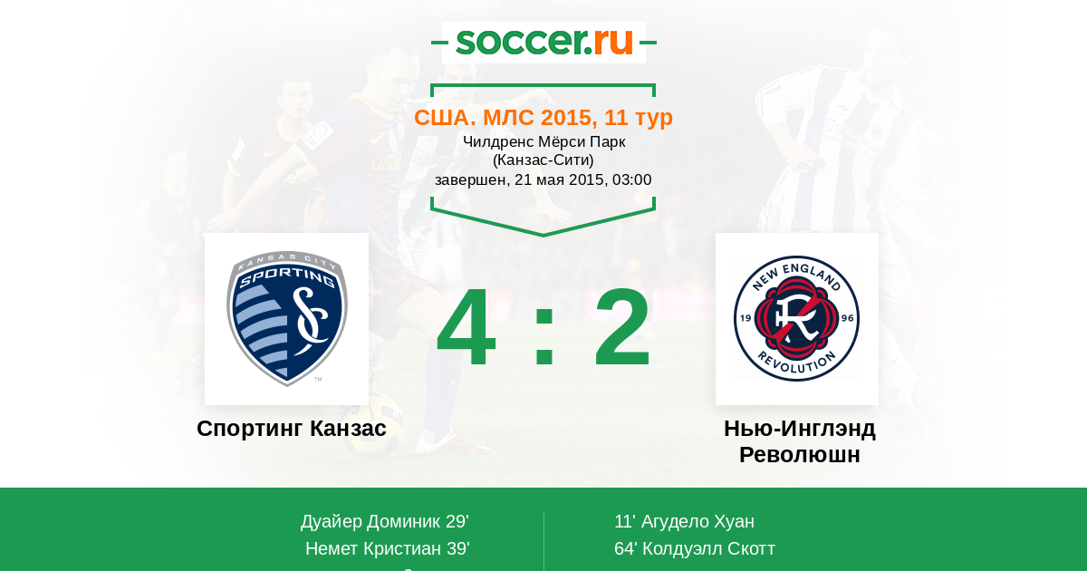 США. МЛС 27.04.2014 Нью-Инглэнд Революшн Логотип футбольный клуб Нью-Инглэнд Революшн (Фоксборо) 2:0 Логотип футбольный клуб Спортинг Канзас (Канзас-Сити) Спортинг Канзас