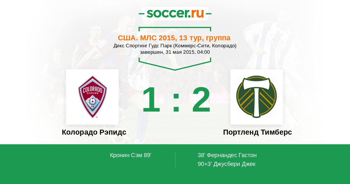 США. МЛС 01.07.2012 Колорадо Рэпидс Логотип футбольный клуб Колорадо Рэпидс (Денвер) 3:0 Логотип футбольный клуб Портленд Тимберс Портленд Тимберс