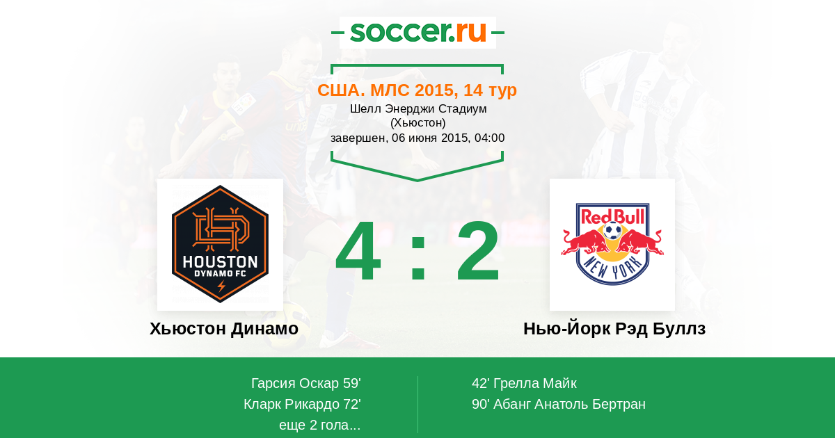 США. МЛС 24.04.2014 Нью-Йорк Рэд Буллз Логотип футбольный клуб Нью-Йорк Рэд Буллз 4:0 Логотип футбольный клуб Хьюстон Динамо Хьюстон Динамо