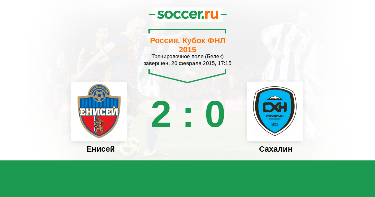 Россия. Первая лига 25.04.2015 Сахалин Логотип футбольный клуб Сахалин (Южно-Сахалинск) 1:0 Логотип футбольный клуб Енисей (Красноярск) Енисей