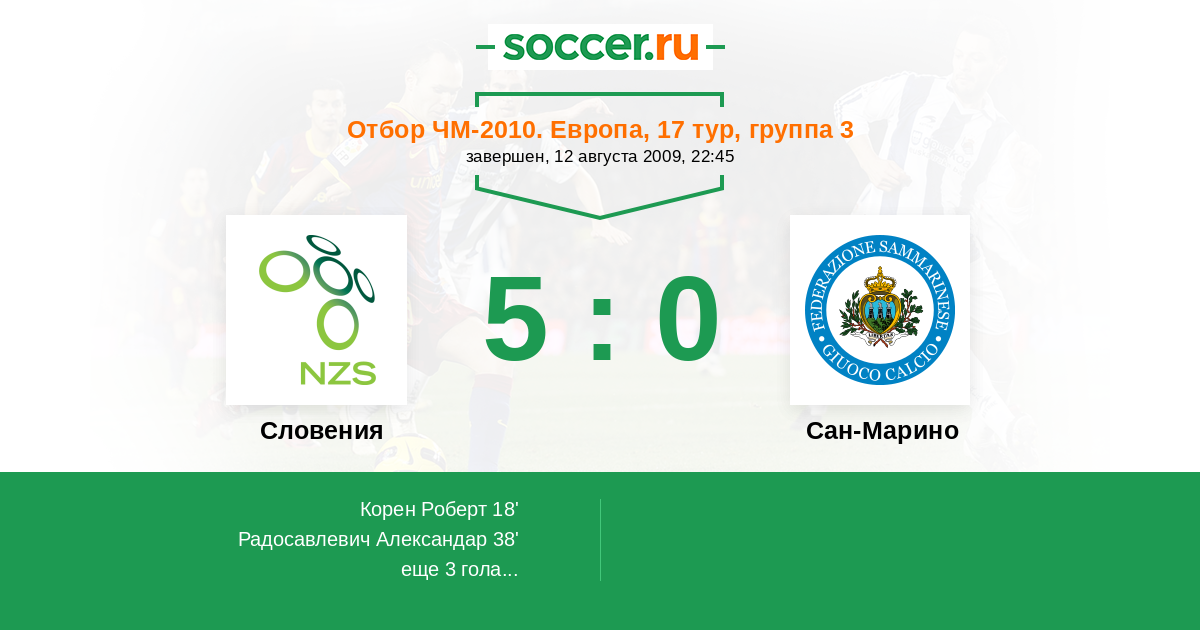 Словения 21:0 12:0 9:0
