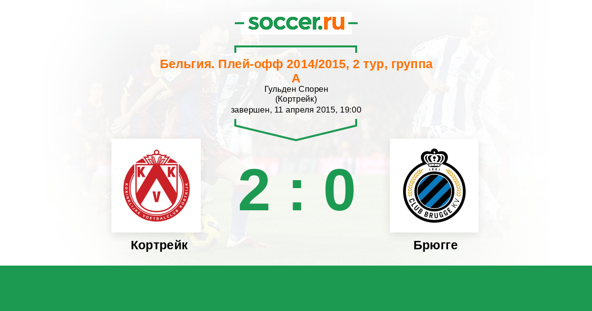 Бельгия. Про-Лига 08.02.2015 Кортрейк Логотип футбольный клуб Кортрейк 2:0 Логотип футбольный клуб Брюгге Брюгге