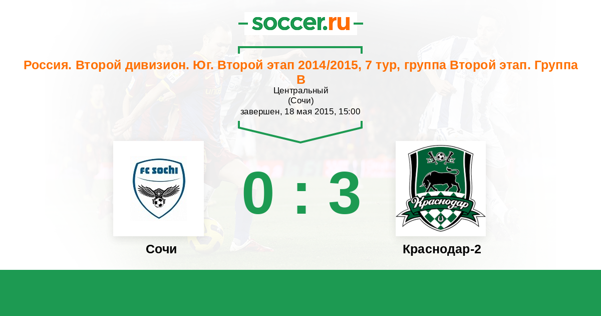 Россия. Вторая лига. Группа 1 21.04.2015 Краснодар-2 Логотип футбольный клуб Краснодар-2 2:3 Логотип футбольный клуб Сочи Сочи