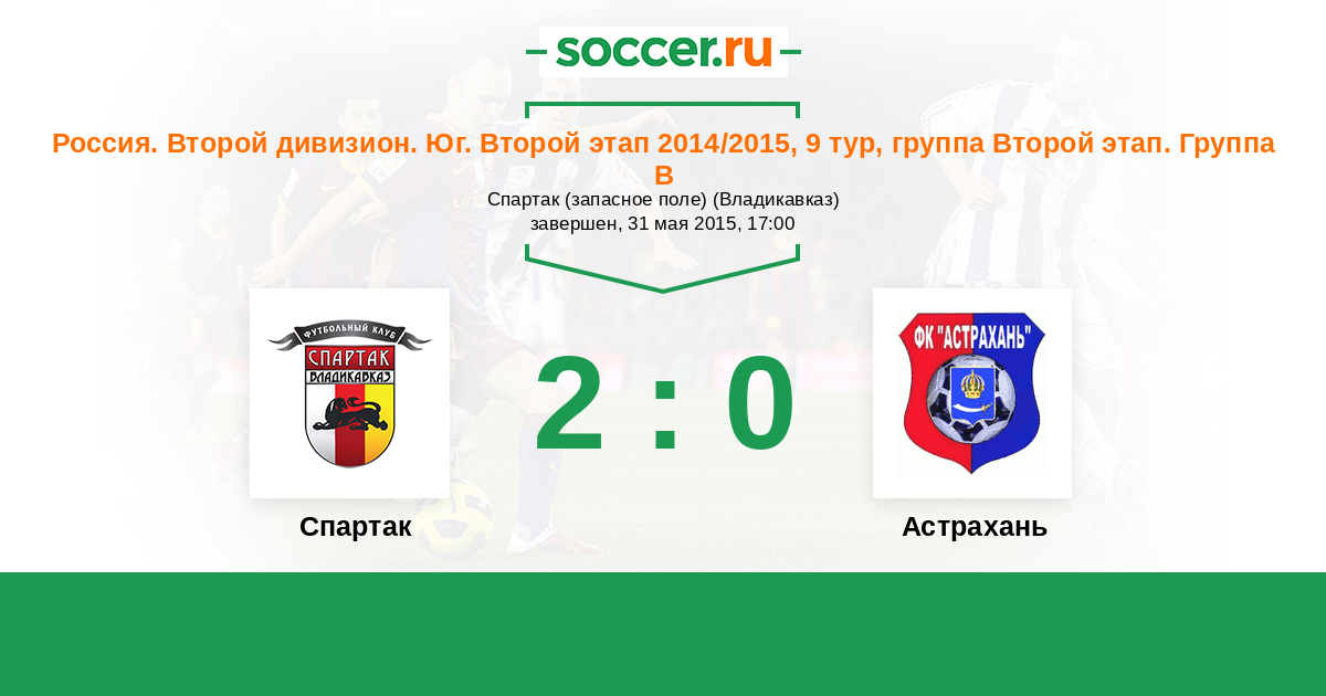 Россия. Вторая лига. Группа 1 03.05.2015 Астрахань Логотип футбольный клуб Астрахань 3:0 Логотип футбольный клуб Алания (Владикавказ) Алания