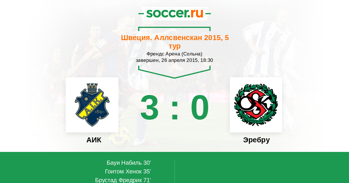 Швеция. Аллсвенскан 13.04.2014 АИК Логотип футбольный клуб АИК (Стокгольм) 1:1 Логотип футбольный клуб Эребру Эребру