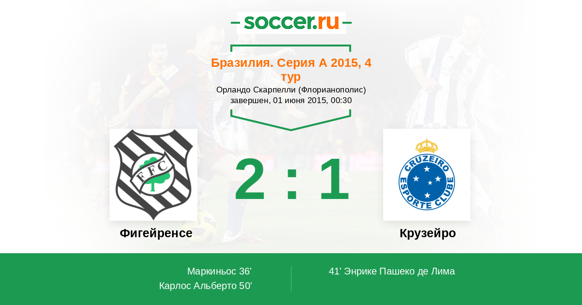 Бразилия. Серия А 06.09.2015 Крузейро Логотип футбольный клуб Крузейро (Белу-Оризонти) 5:1 Логотип футбольный клуб Фигейренсе (Флорианополис) Фигейренсе