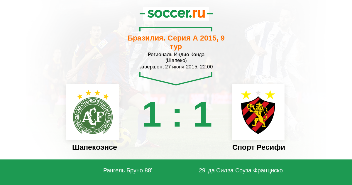 Бразилия. Кубок 07.05.2015 Шапекоэнсе Логотип футбольный клуб Шапекоэнсе 2:0 Логотип футбольный клуб Спорт Ресифи Спорт Ресифи