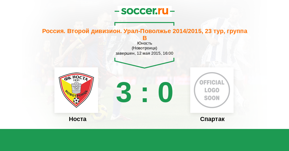 Россия. Вторая лига. Группа 4 12.05.2015 Носта   3:0 Логотип футбольный клуб Спартак (Йошкар-Ола) Спартак
